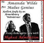 How did it get to be December??? Oct. 13/06 It's the most wonderful time Of the year!!! July/06 Chataqalan Where did the time go???? Oct. 13/05 Nov. 13/04 And they said it would never happen The fifth and final part of Oct. 13/04 Very Merry MULDERMAS! play Spin the Bottle June 24/04 New art and recs at New recs at Part four of April 7/2004 Let's see: New art and recs at New recs at Update at New and improved Chapter Five of And, um, part three of January 26/2004 How time flies... Latest project: Lots and lots of new art and fic at IOHO New recs at Updates at And yes, Under Construction is still under construction. December 12 Sigh. Suffice it to say, two hands are better than one. Let's put the *X* back in Xmas! June 16 Q: Could she *BE* slower? more of April 15 New WIP April 6 I was eaten by wolves. Okay, no. I am working on fic. Really. Let's see. All I've done is beta. And made covers for IOHO. That counts, right? December 23 New fic! December 1 Let's put the *X* back in Xmas! One day, you wake up, and it's October. Also: Chapter Four of Bright Lights, Big Trouble Brand Spankin' new MulderClones Life, okay? After many many months, two bouts of pneumonias, one crisis after another, William, The Truth, and the end of the series as we know it, it's finally done! And visit And for those who have asked, yes, I will be updating MCRU -- I have just been too busy with the brain eating fic. January 29 New fic! Solstice Updated Raiders of the Lost Fanfic! CyberScroll of the Faithful - updated MCRU Hall of Fame - updated January 8/02 Happy New Year Thanks to everyone who voted for my stuff in the 2001 Spookys. New, teeny tiny, special order AngelFic,